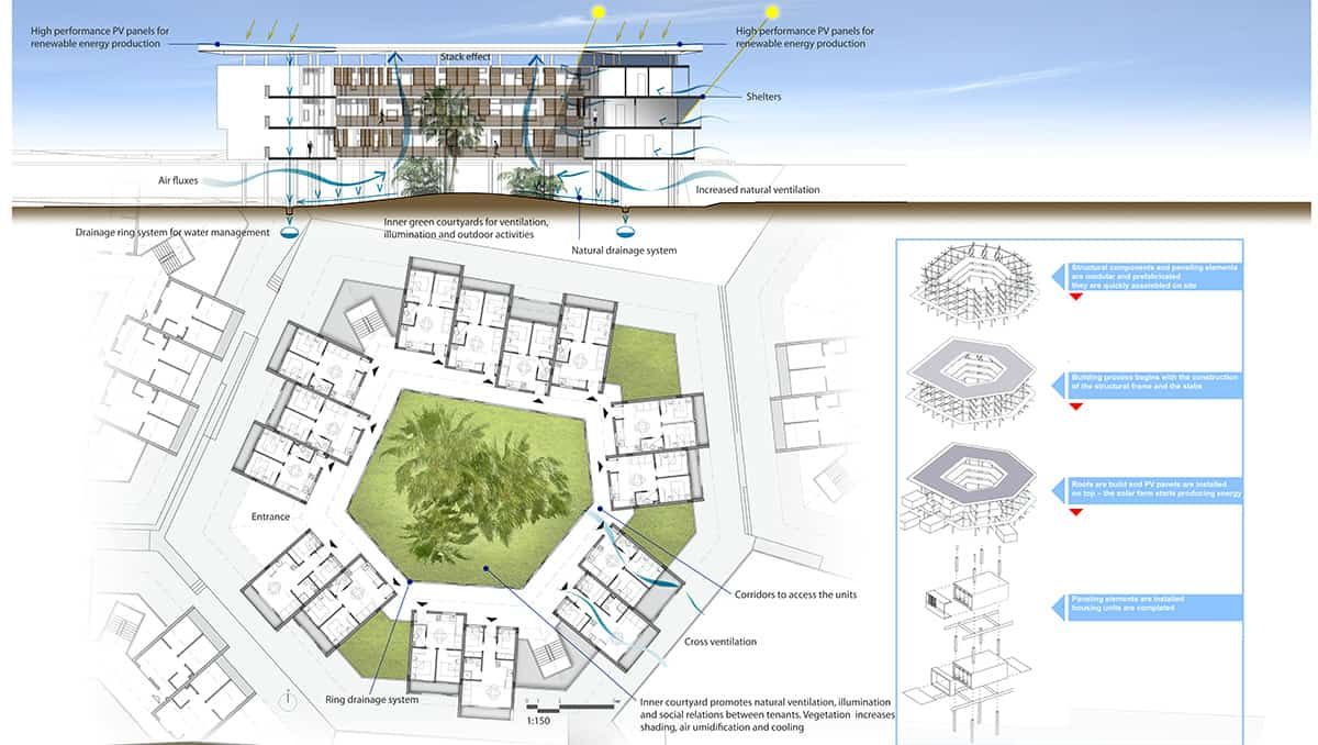 Coral City is an architectural design concept for a mixed-use socialized housing project in Quezon City, Philippines. It was IDC’s winning entry (Special Energy Award) for the Design Against the Elements international architectural competition. Coral City is a 30,000 SQM energy-efficient green complex comprising a cluster of individual buildings housing several structures and spaces including flood-proof shelters, inner courtyards, parking and other environment-friendly facilities.